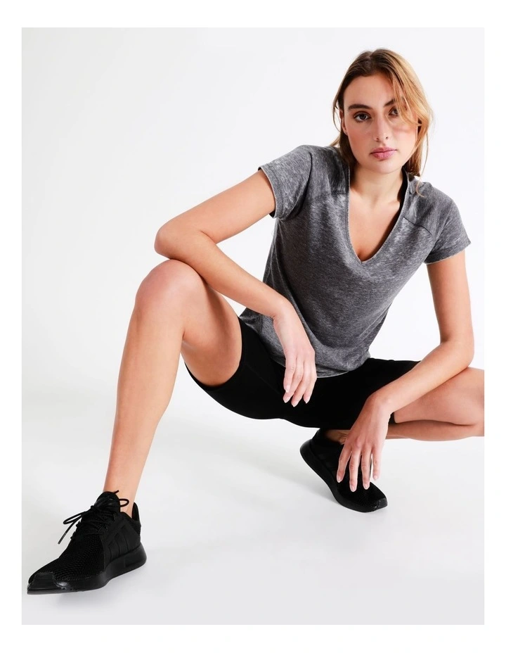 Up your activewear game with our cotton burn out tee. Designed to be soft and breathable, this tee is a relaxed fit. With it’s comfortable design, this tee is perfect for wearing over your activewear after a fitness session