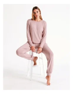 Chloe & Lola Botanical Gardens Ecovero Viscose Long Sleeve Pant In Cream Botanical