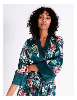 Chloe & Lola Botanical Gardens Recycled Satin Robe In Teal Botanical