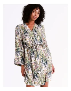 Chloe & Lola Botanical Gardens Ecovero Viscose Long Sleeve Robe In Cream Botanical