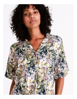 Chloe & Lola Botanical Gardens Ecovero Viscose Short Sleeve Shirt In Cream Botanical